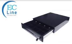 CAJON DE DINERO EC LINE EC-CD-100-P, NEGRO, COMPARTIMIENTOS 5 BILLETES - 8 MONEDAS, RODAMIENTO, PANEL DE ACERO INOXIDABLE.